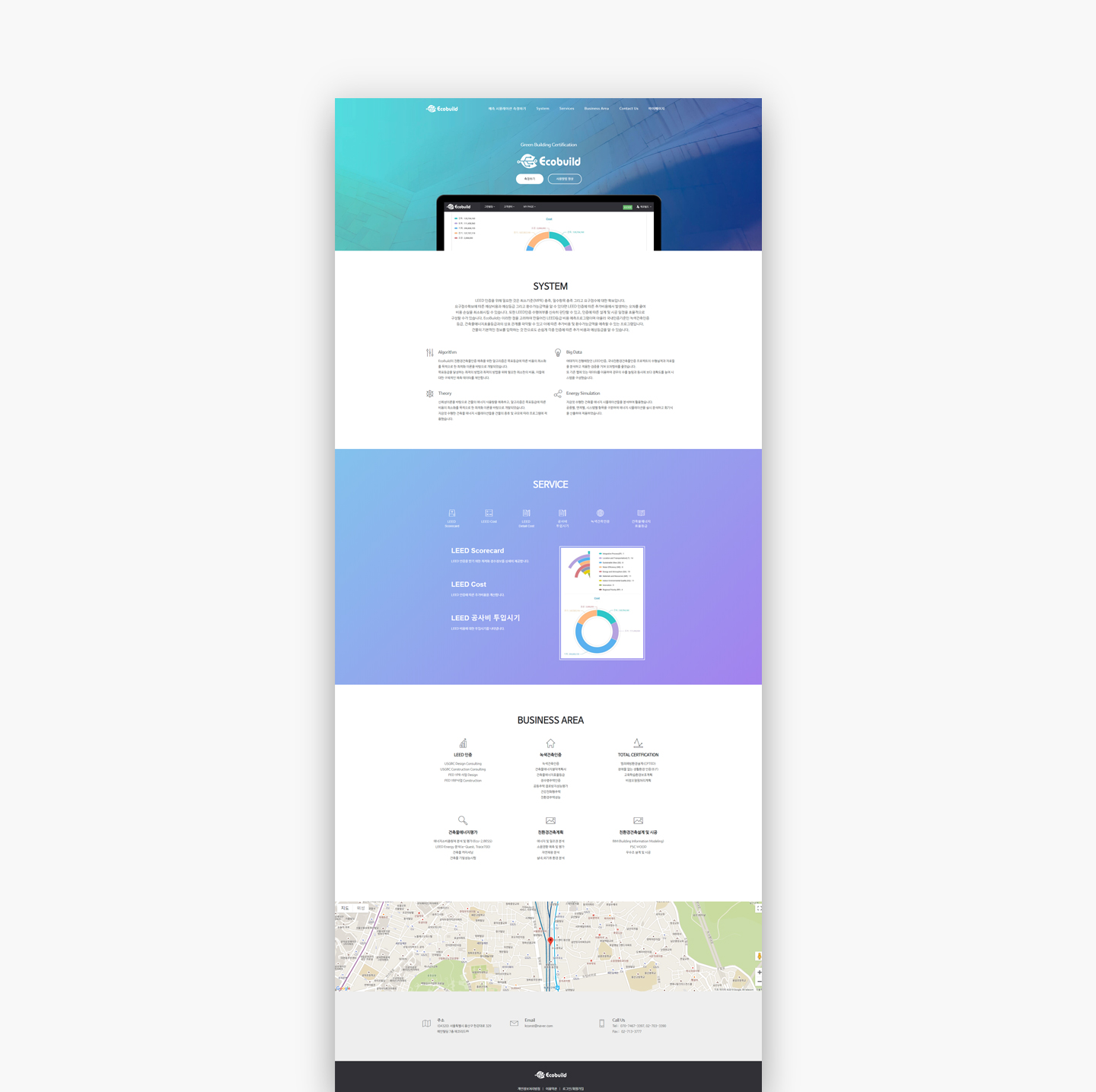 국내 주요 설계사 및 건설사의 LEED 인증, FED 및 YRP 등의 주한 미8군 프로젝트 LEED 인증에 참여하여 친환경 계획 및 인증, 국내건축물 관련 인증, 에너지분석 및 커미셔닝을 수행하고 있는 ECOLEAD 의 ECO BUILD 시스템을 제작하였습니다.